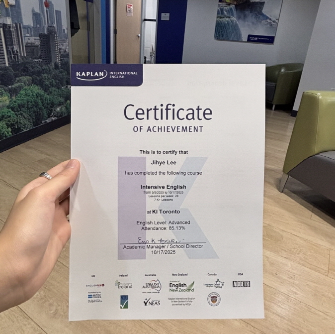 안녕하세요, 토론토 내 어학원을 고민하는 분들께 카플란을 추천드리려고 해요. 제가 어학원을 선택할 때 가장 중요하게 생각했던 것은 바로 국적비율이었어요. 세계 여러 나라 친구들을...
