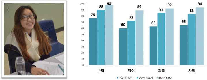 지속적인 관리를 통해 3년 유학생활 동안 꾸준히 학교 성적이 좋아짐