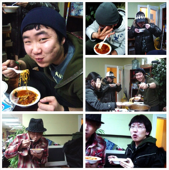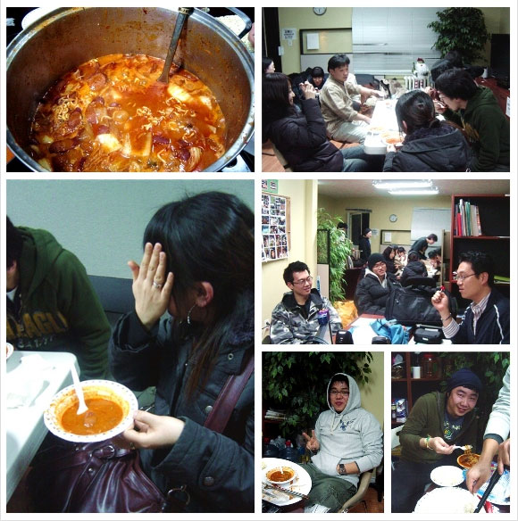 신입회원분들이 먼저 부대찌게의 맛을 봅니다.