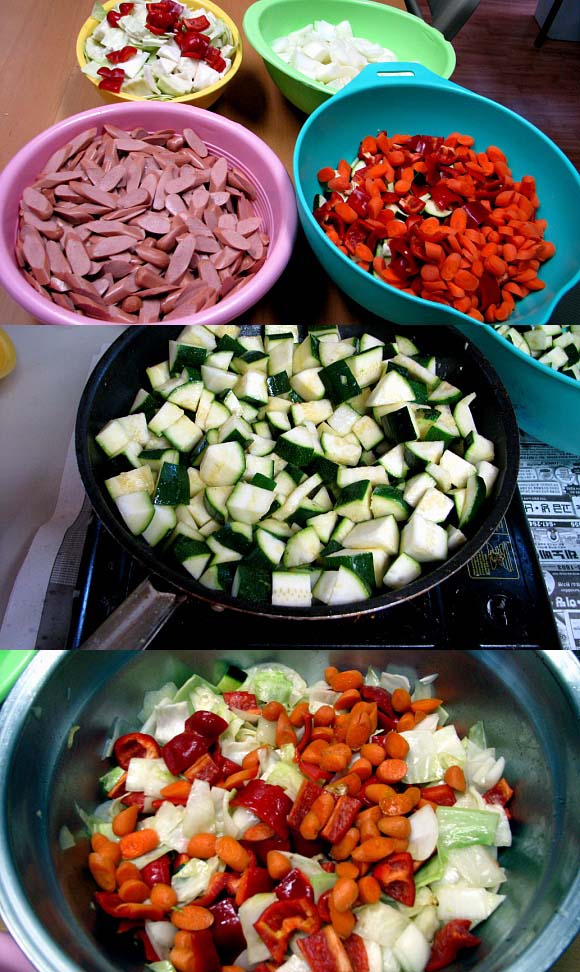 전직원들이 모두 모여 장을 보고 야채를 다듬는 즐거운 금요일~~ ^^ 오늘은 소세지 야채볶음입니다.