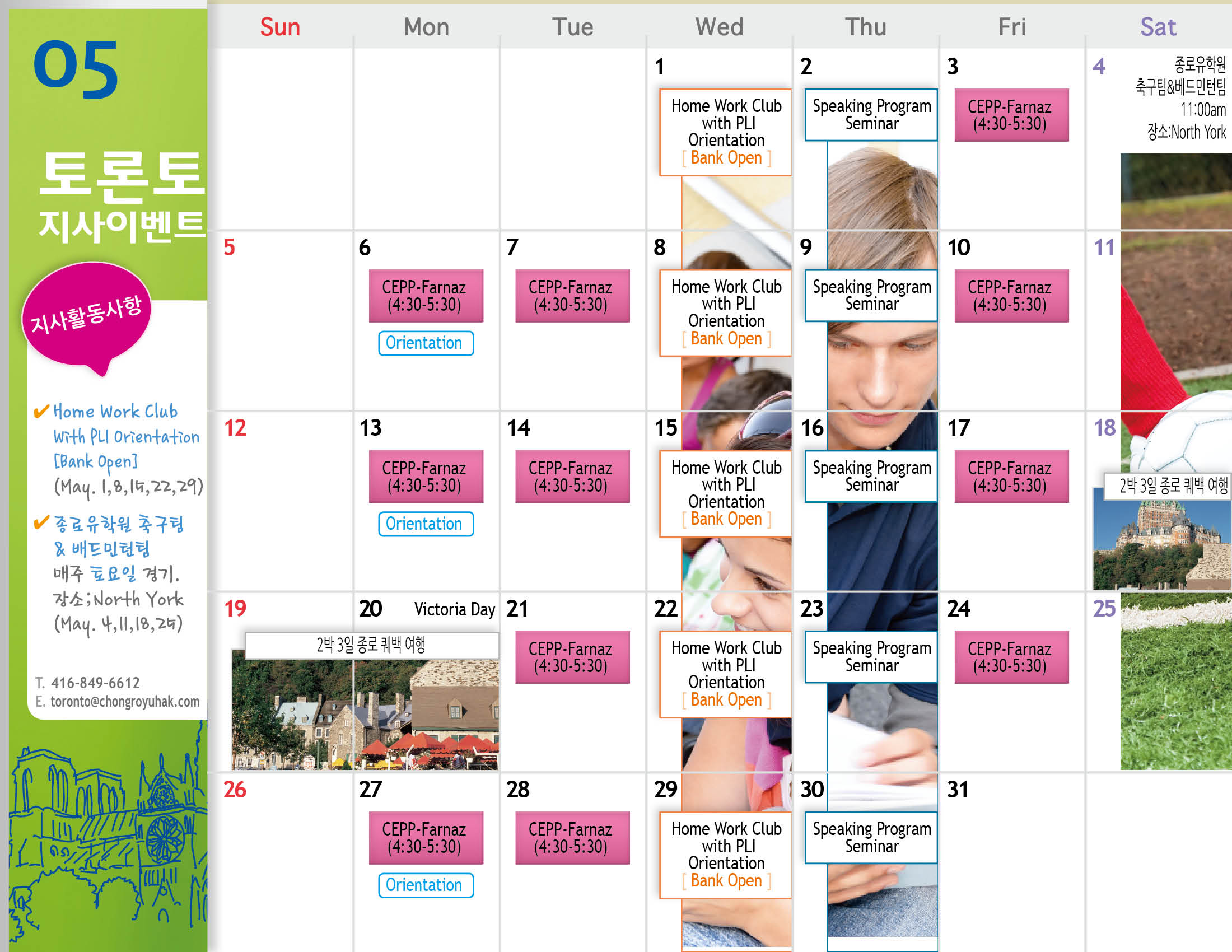 그럼 토론토 지사 5월 엑티비티 캘린더 소개해 드리겠습니다!