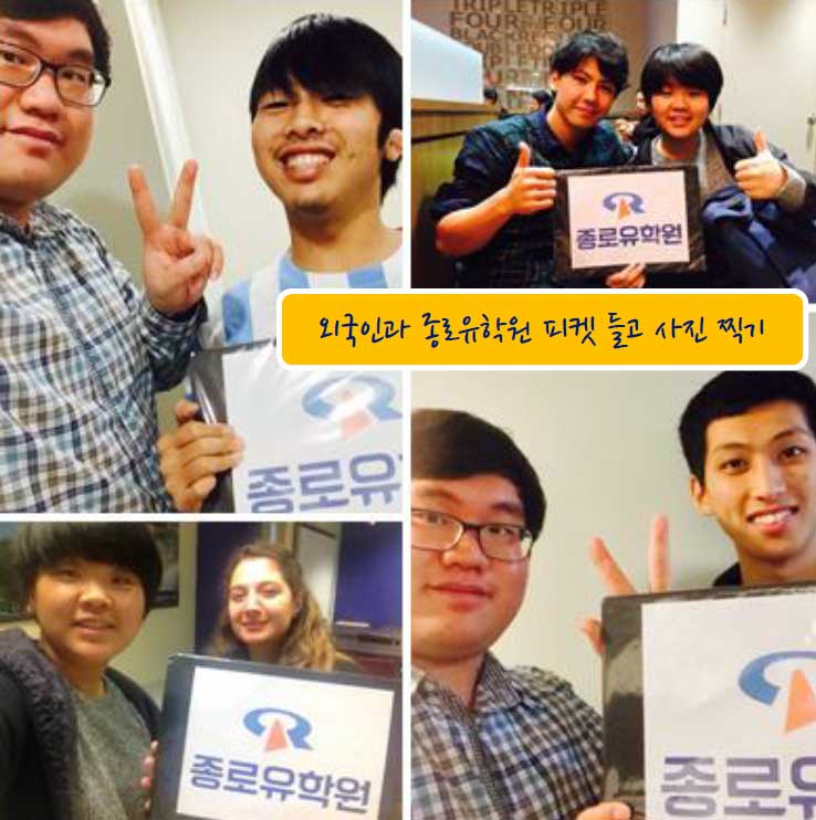 MISSION 3. 외국인과 종로유학원 피켓 들고 사진 찍기
