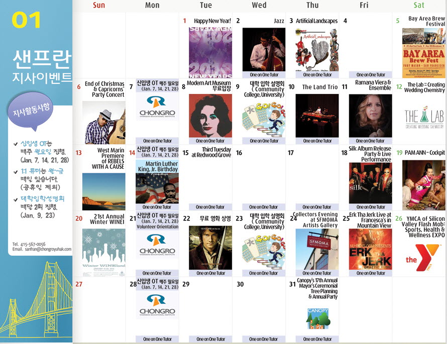 샌프란시스코지사의 2013년 1월 Activity Calendar  입니다^^