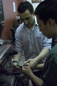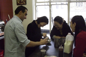 회원분들 모두가 25년 경력의 베테랑 Tony선생님의 트레이닝아래 라떼, 카푸치노, 모카, 롱블랙등 모든 종류의 커피들을 만들어 보았는데요, 덤으로 잠깐의 라떼아트도 배웠답니다. 첨으로 접하는 라떼