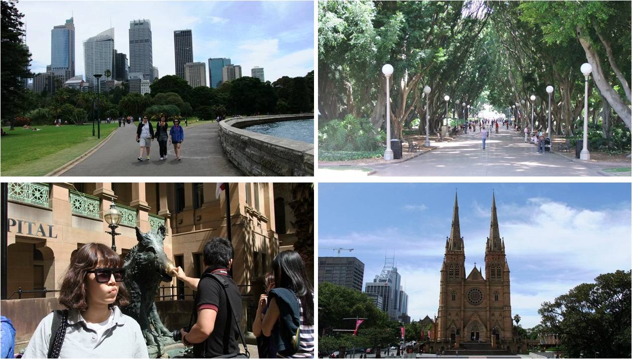 시드니 지사에서 학원가는 길, 학원에서 하이드 파크를 지나 St. Marys Cathedral과 도서관으로 가는 길,