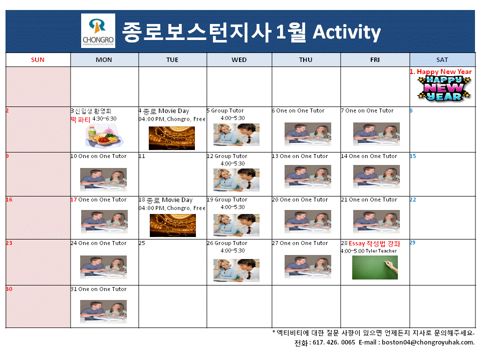 그런 의미에서 새 해에는 더욱 더 활발한 Boston Activities 로 여러분을 찾아 뵙겠습니다.