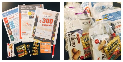 종로학생들을 위한 <어학원 패키지> 입니다. 패키지 안에는 종로유학원 보스턴지사 소개 및 이벤트 홍보물,