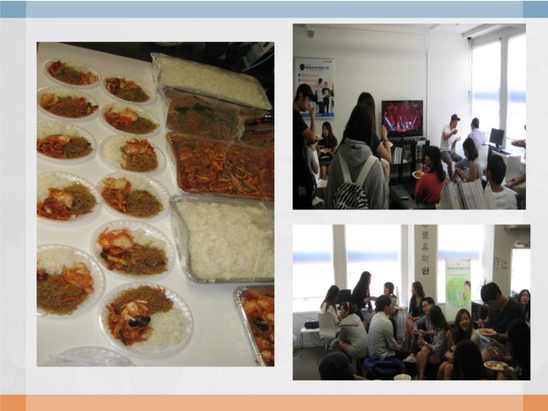 더운 여름 저희 학생들과 지친 원기 회복을 위해 한자리에 모여 한국 음식을 나눠 먹으며 즐거운 하루를 보냈습니다.
