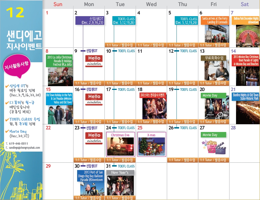* 12월 18일 : 샌디에고지사 한국 음식 이벤트 & Christmas 파티