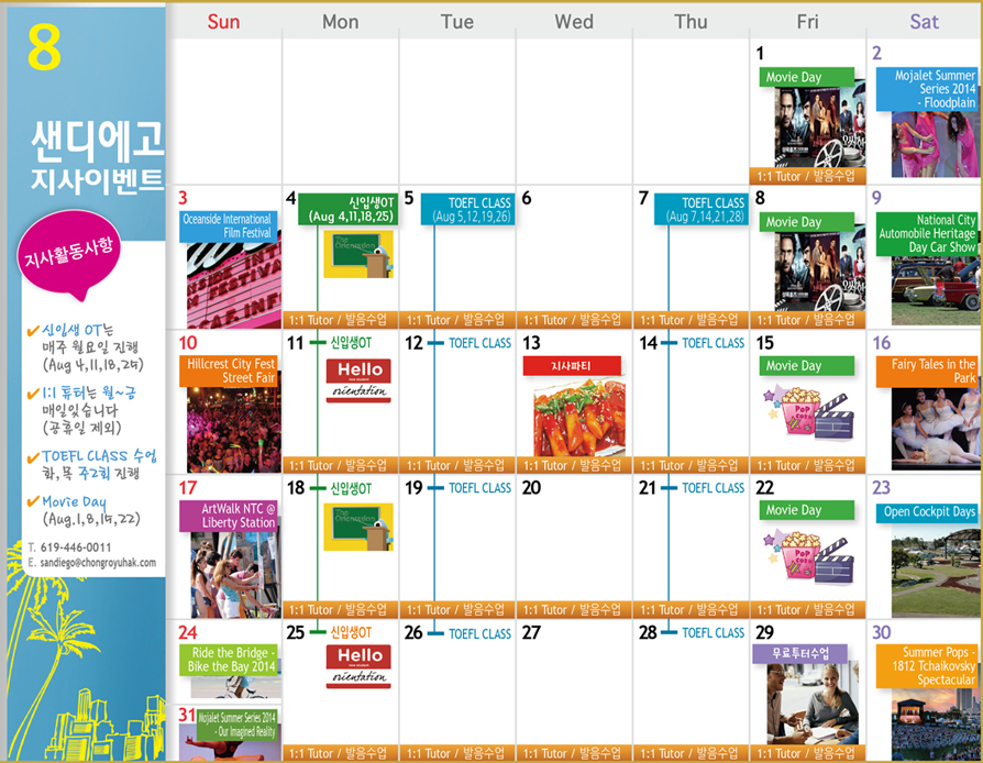 [샌디에고] 8월 Activity Calendar