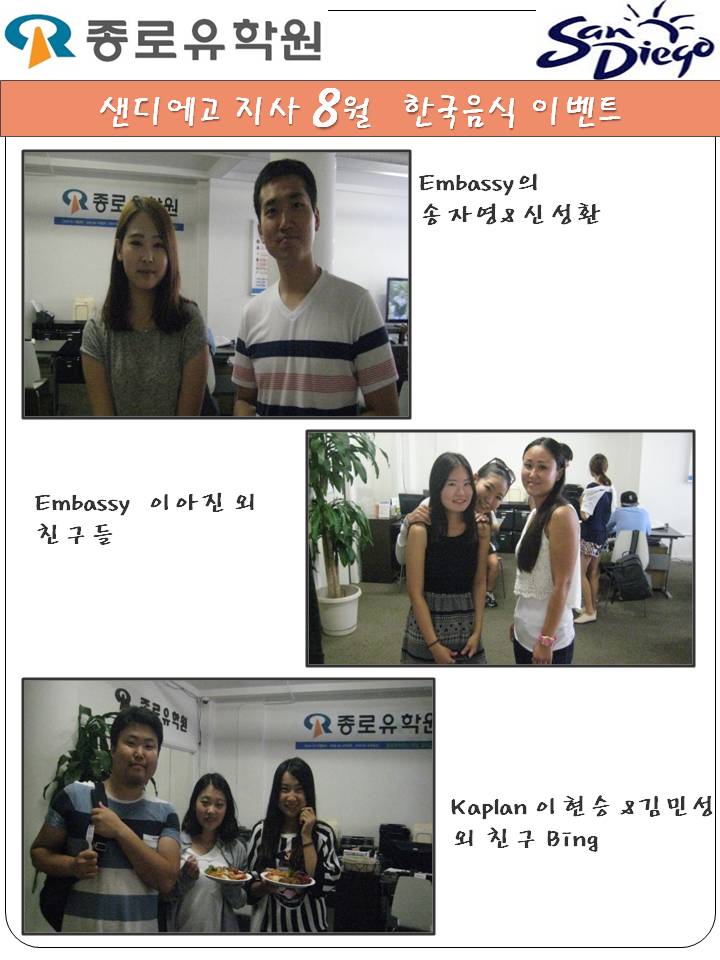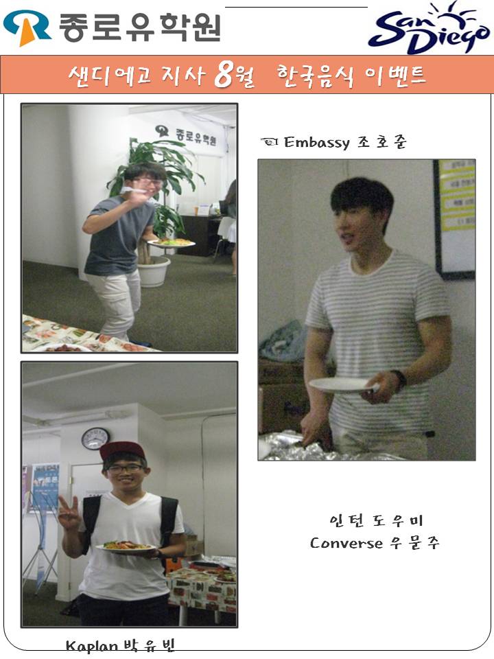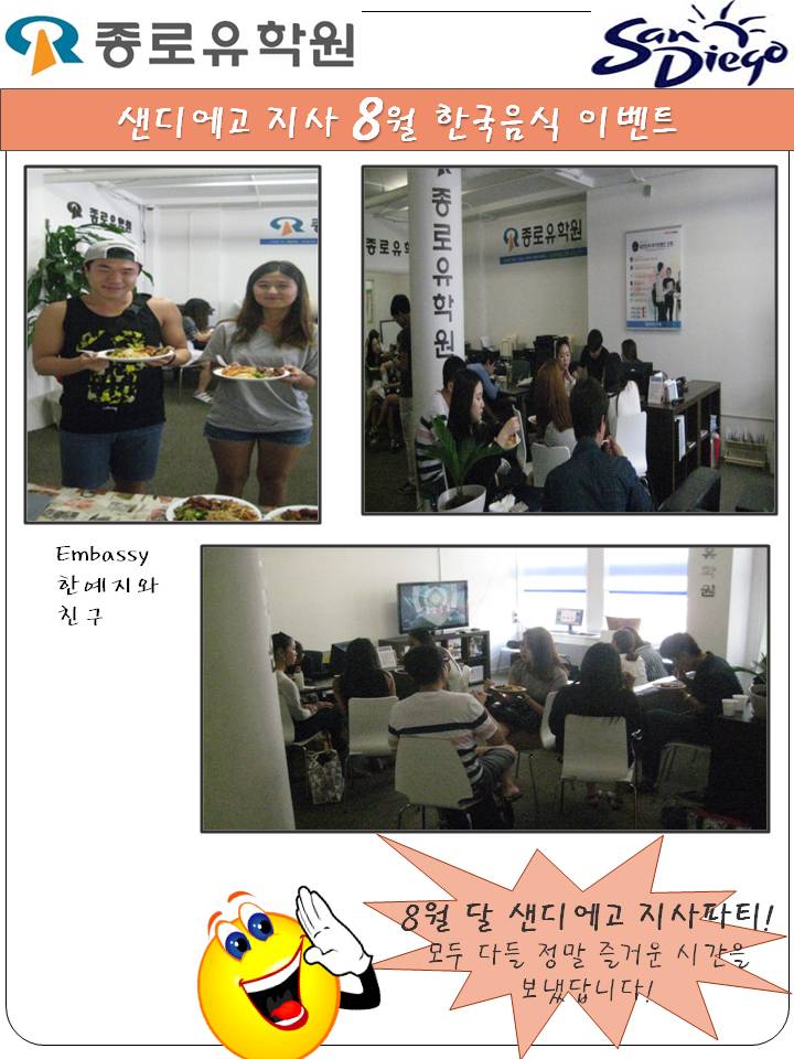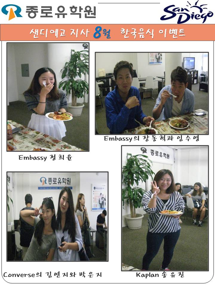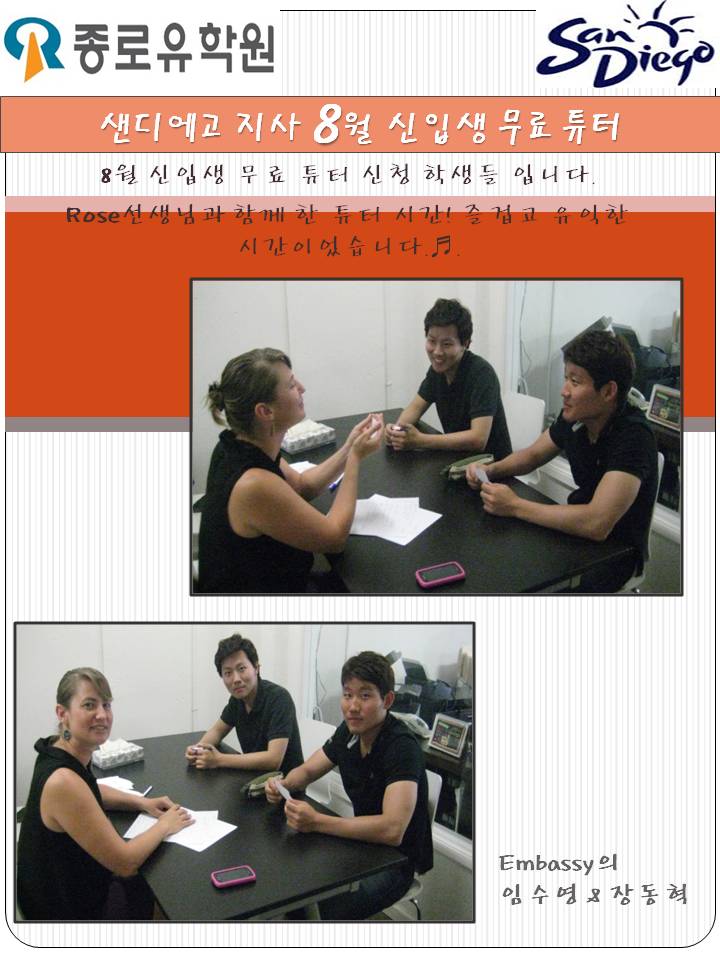 8월 샌디에고 지사에 소식 전해드릴려고 합니다. 신규 학생들을 위한 '무료 튜터 이벤트'와 '지사파티 이벤트'가 있었습니다. 신규학생들과 Rose 선생님의 무료 튜터를 진행하여, 모두들 즐겁고 유익한 시간을 보냈습니다.