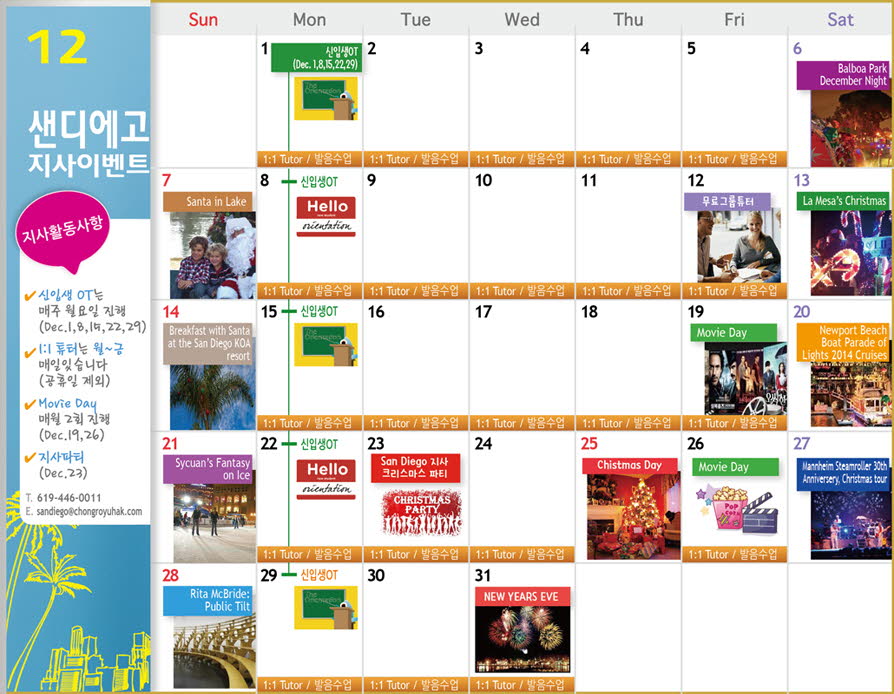 12월 샌디에고 엑티비티 소식 전해 드리겠습니다!