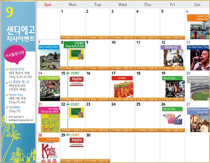 9월 샌디에고 엑티비티 소식 전해드리겠습니다.