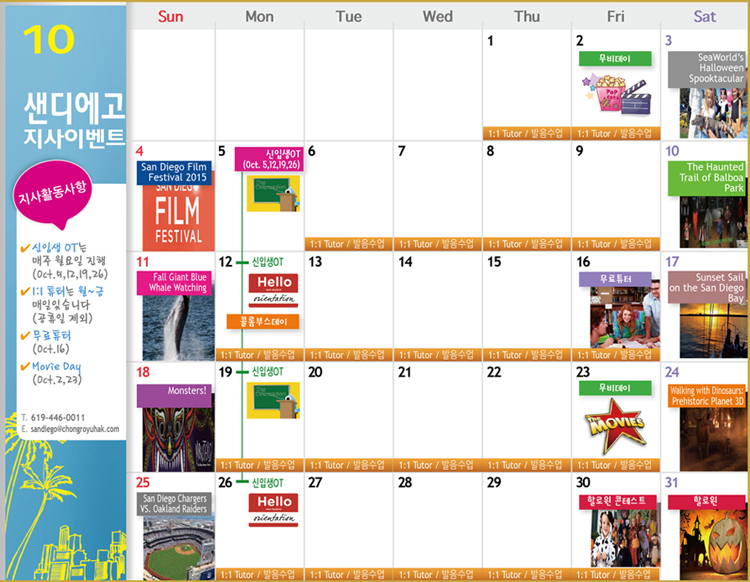 [샌디에고] 10월 샌디에고센터 이벤트&액티비티 캘린더