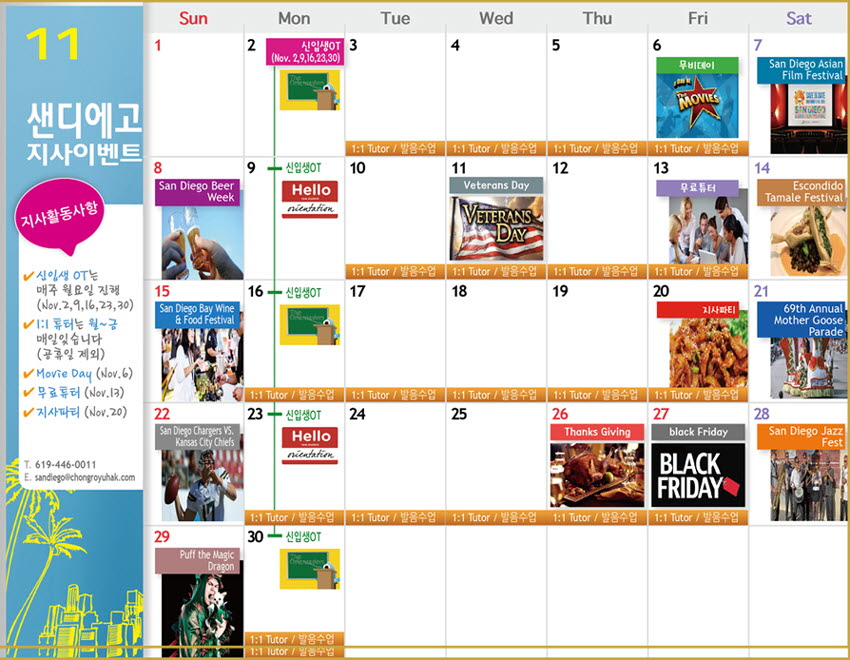 [샌디에고] 11월 샌디에고센터 이벤트 & 액티비티 캘린더