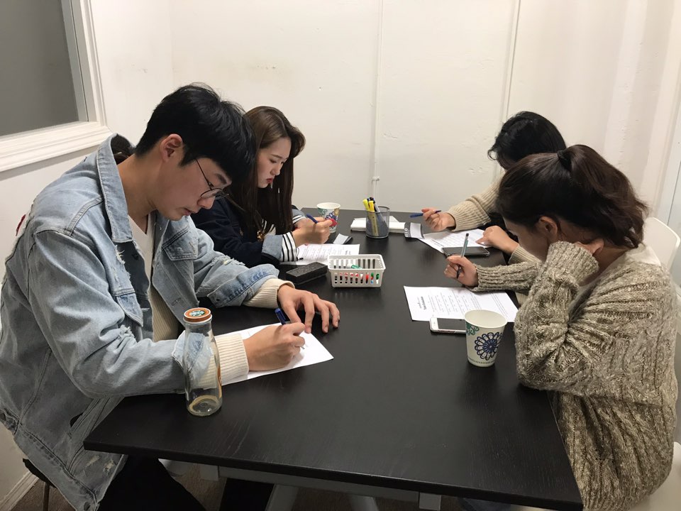 이* : 어학원을 다니지만 영어 스피킹 연습하는 시간을 더 가지고 싶었는데,