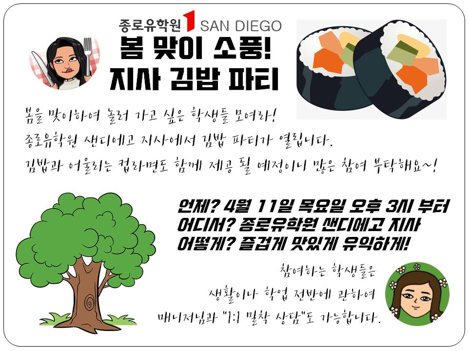 종로유학원 샌디에고 지사에서 종로유학원 학생들과 타유학원생 모두를 대상으로