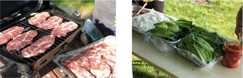 직접 밑간 해 두었던 목살, 학생들이 좋아 할 김치, 쌀밥, 야채, 쌈장 등 넉넉히 준비 한 음식이 모두 금방 동이 날 정도로