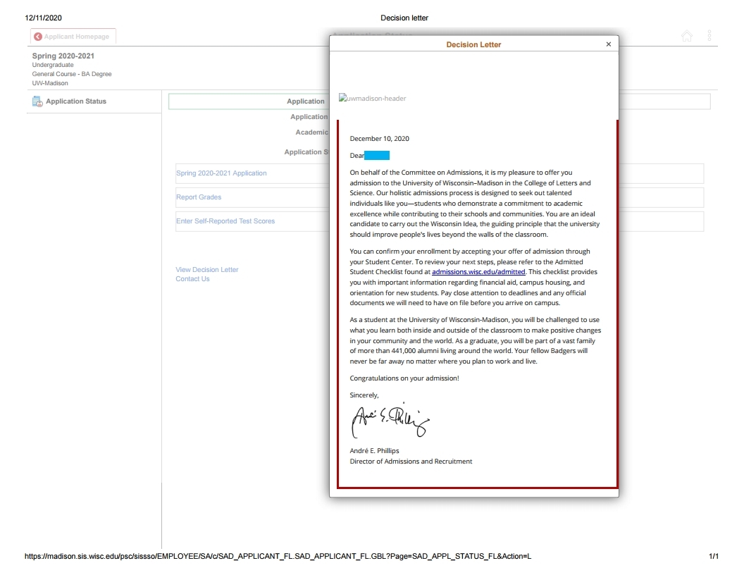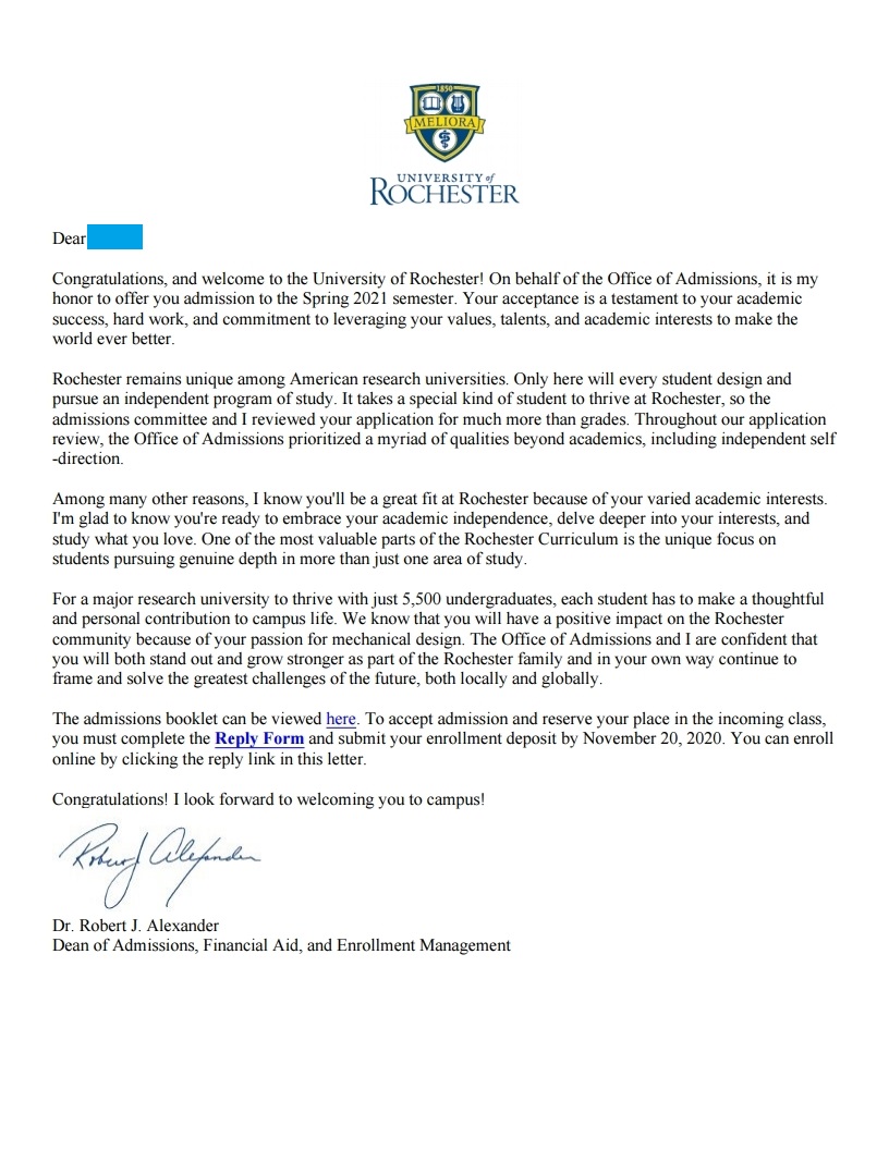 저는 NYU, University of Rochester, 그리고 University of Wisconsin에 합격하였고