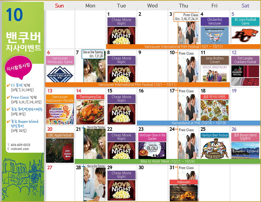 밴쿠버 지사 입니다. 업데이트 된 10월 Activity Calendar 드립니다.