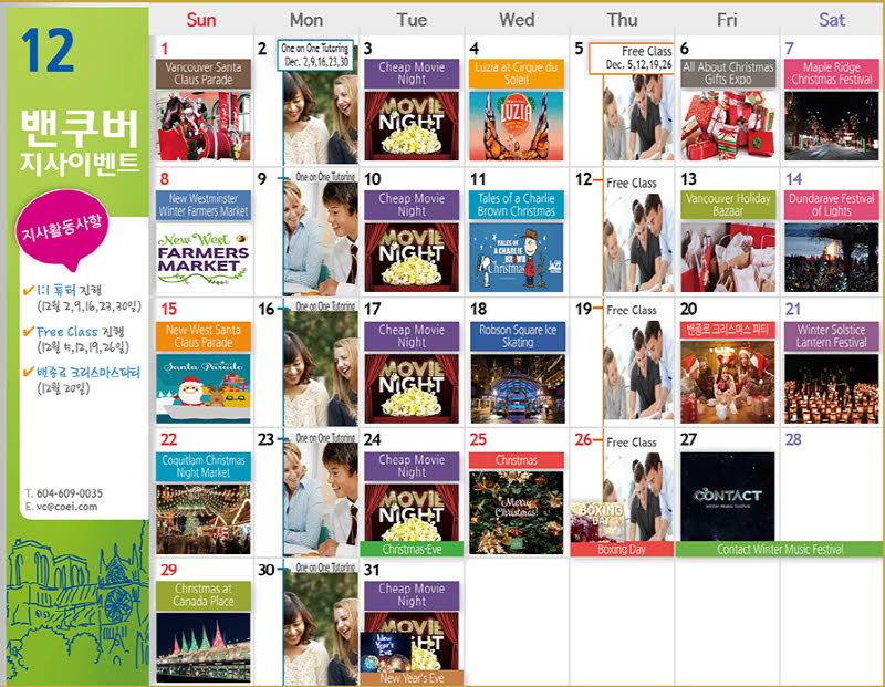 안녕하세요, 밴쿠버 지사 입니다. 업데이트 된 12월 Activity Calendar 드립니다