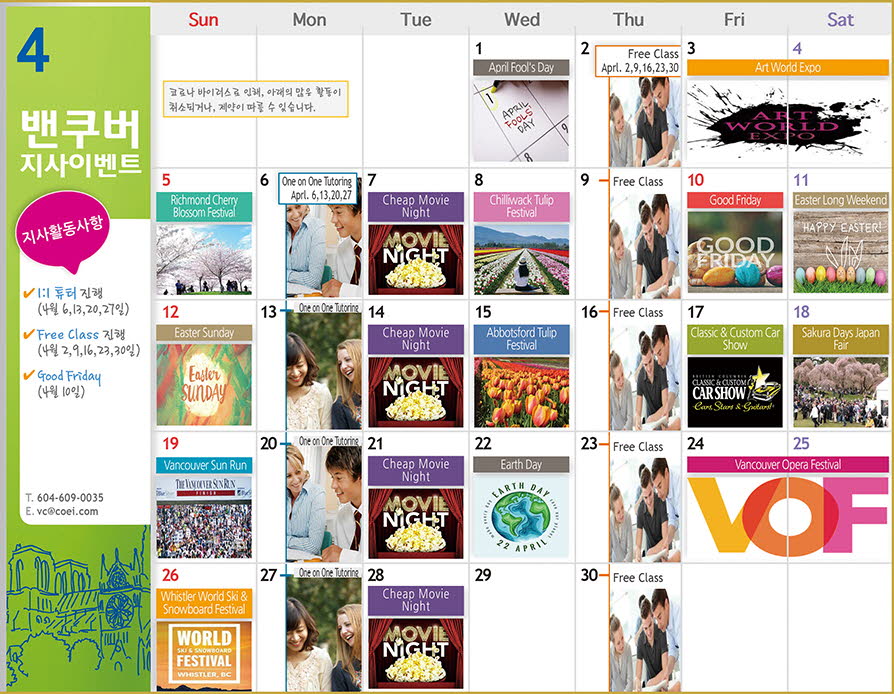 3월 밴쿠버 액티비티&이벤트 캘린더