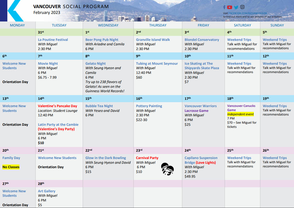 2월 밴쿠버 Kaplan 액티비티