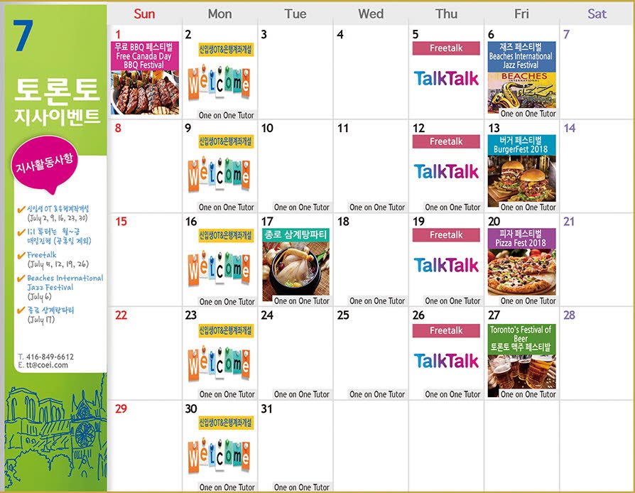 저희 종로토론토지사에서도 7월에 다양한 이벤트를 준비했습니다.