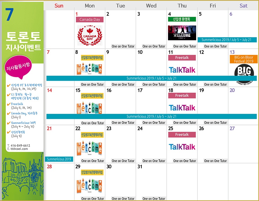8월 토론토 액티비티&이벤트 캘린더▼ 다음글