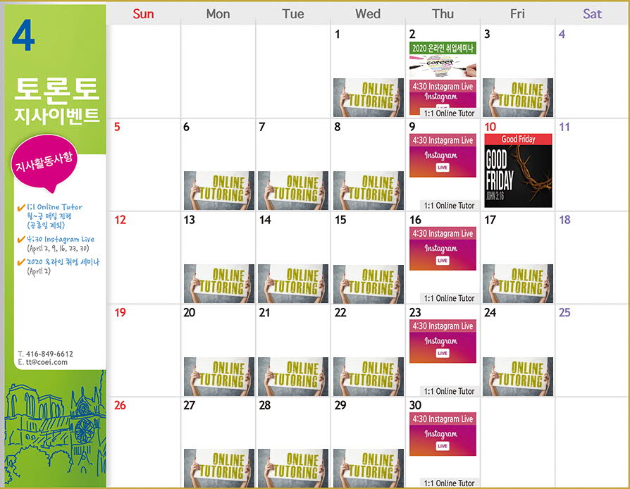 토론토지사 1:1 전문 튜터 멜리사 선생님께서 매주 목요일 오후 4시30분 부터 오후 4시 40분까지 약 10분간 인스타그램 라이브를 통해 학생들과 소통하는 채널입니다.