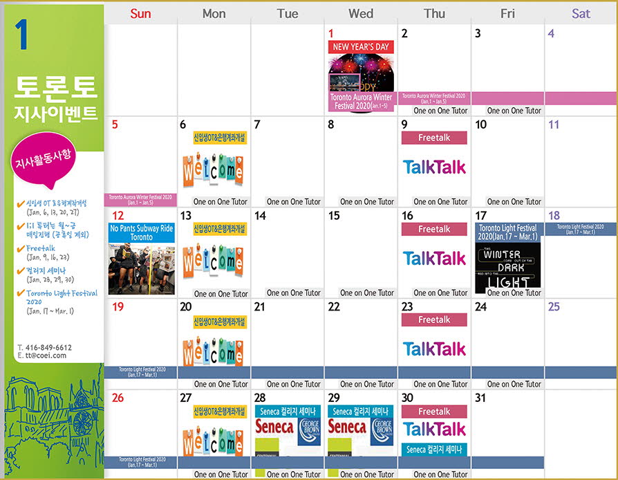 토론토 지사 1월 액티비티 캘린더 안내드립니다~^^