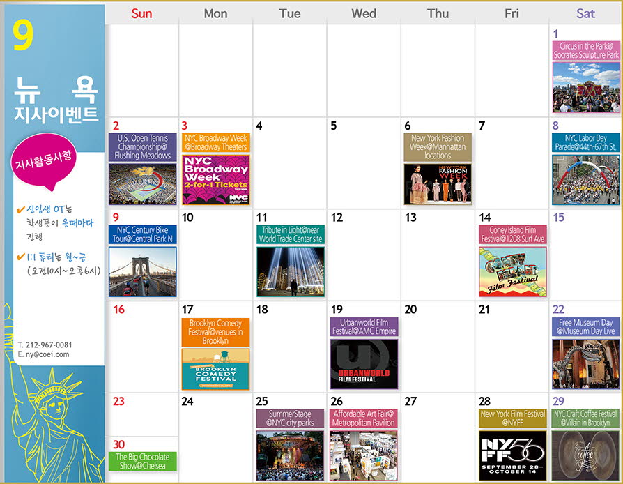 뉴욕에서 진행되는 9월의 이벤트들을 소개해드립니다.