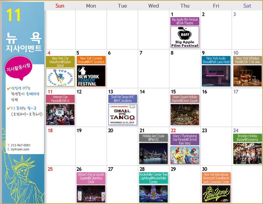 뉴욕에서 진행되는 11월 이벤트들을 소개해 드립니다.