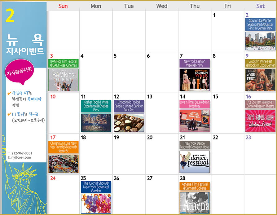 뉴욕에서 진행되는 2월의 이벤트들을 소개해 드리겠습니다.