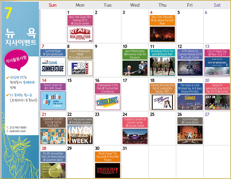 뉴욕에서 진행되는 7월의 이벤트들을 소개해 드리겠습니다