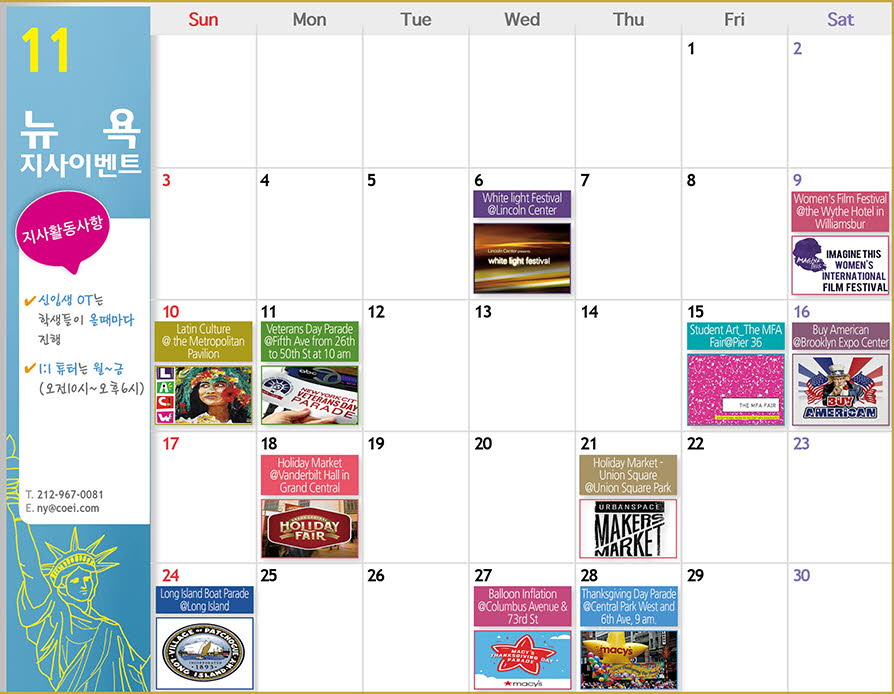 뉴욕에서 11월에 열리는 각종 이벤트들을 안내해드립니다.