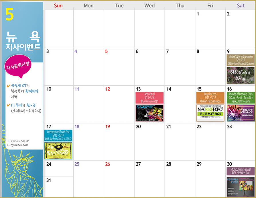 5월 달의 뉴욕 이벤트들을 소개해 드립니다.