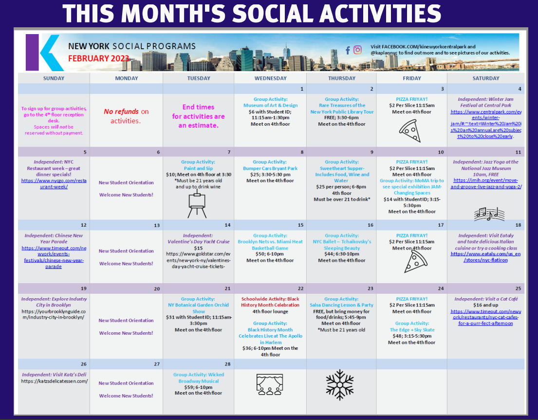 2월 뉴욕 Kaplan 액티비티