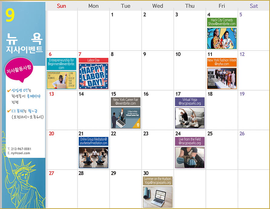 9월 달의 뉴욕 이벤트들을 소개해 드립니다.