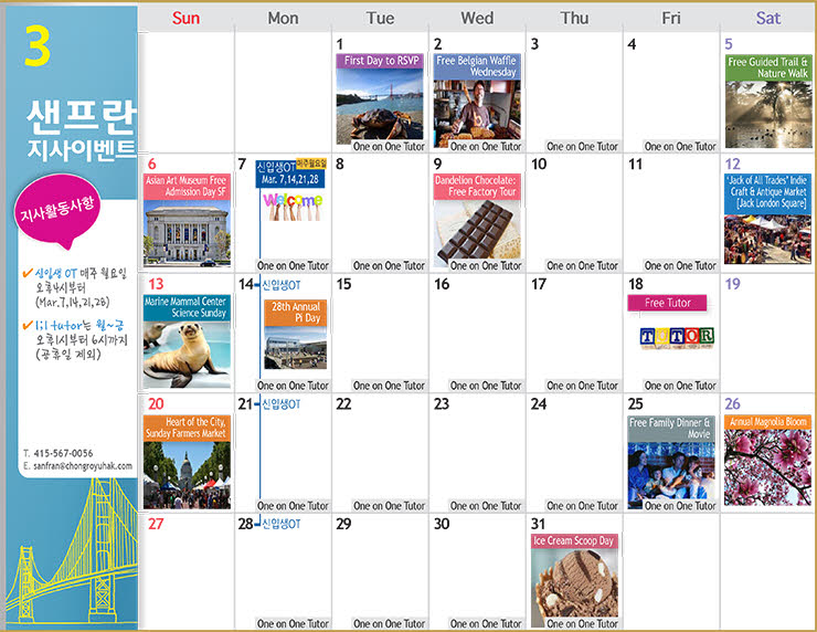 샌프란시스코 3월 액티비티 칼랜더 소개해 드려요! ^^