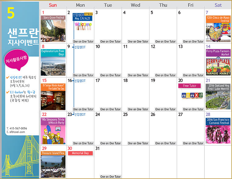 안녕하세요. 종로 샌프란지사에서 따뜻한 5월의 샌프란시스코 이벤트 소식 전달합니다.