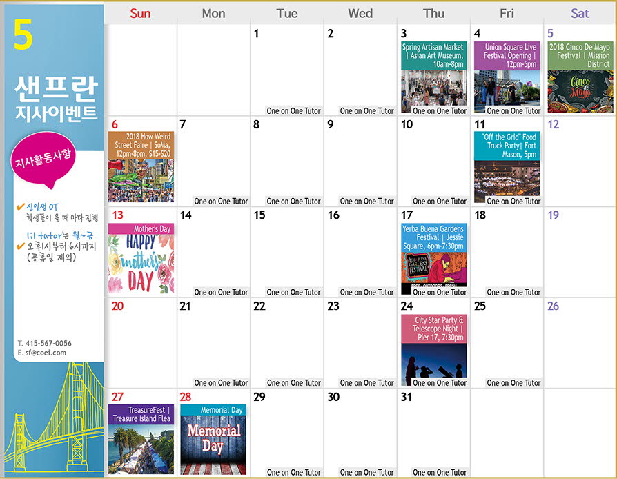 6월 샌프란시스코 액티비티 & 이벤트 캘린더▼ 다음글