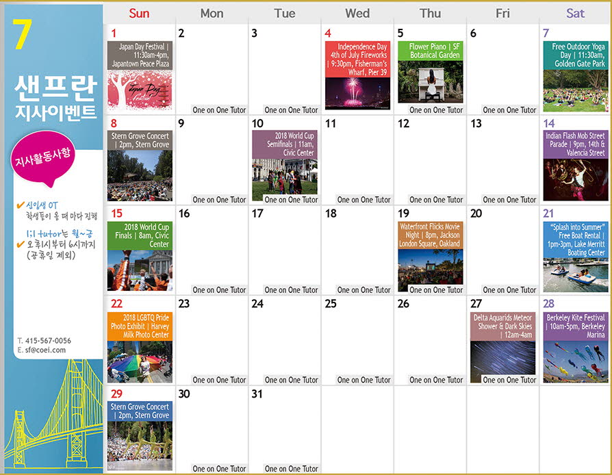 8월 샌프란시스코 액티비티 & 이벤트 캘린더▼ 다음글