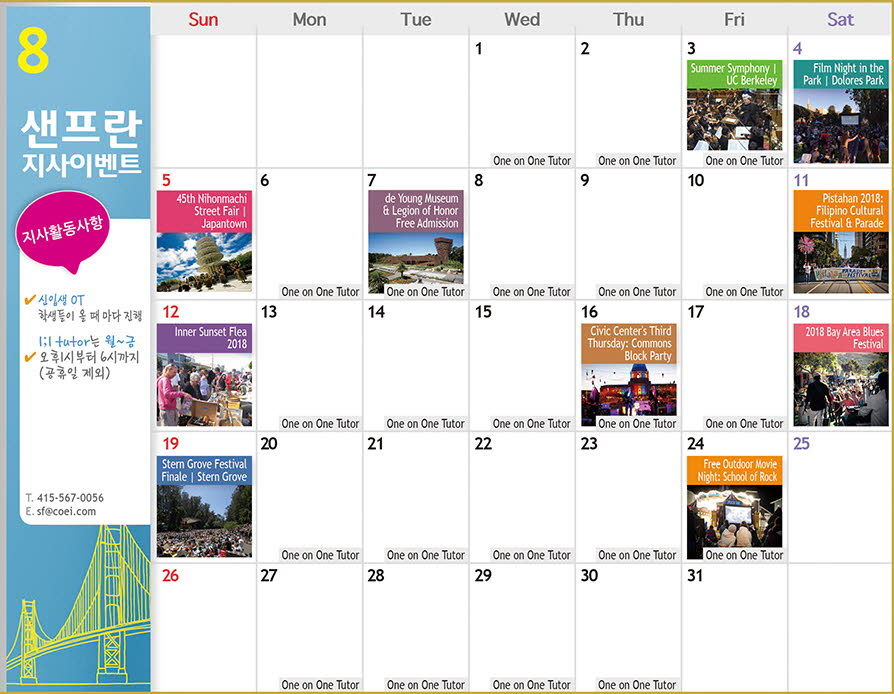 9월 샌프란시스코 액티비티 & 이벤트 캘린더▼ 다음글