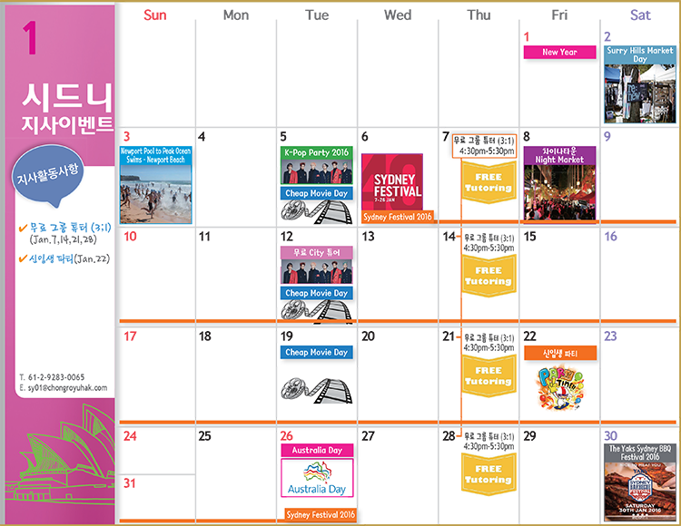 시드니 지사의 1월 이벤트를 아래와 같이 알려드립니다.