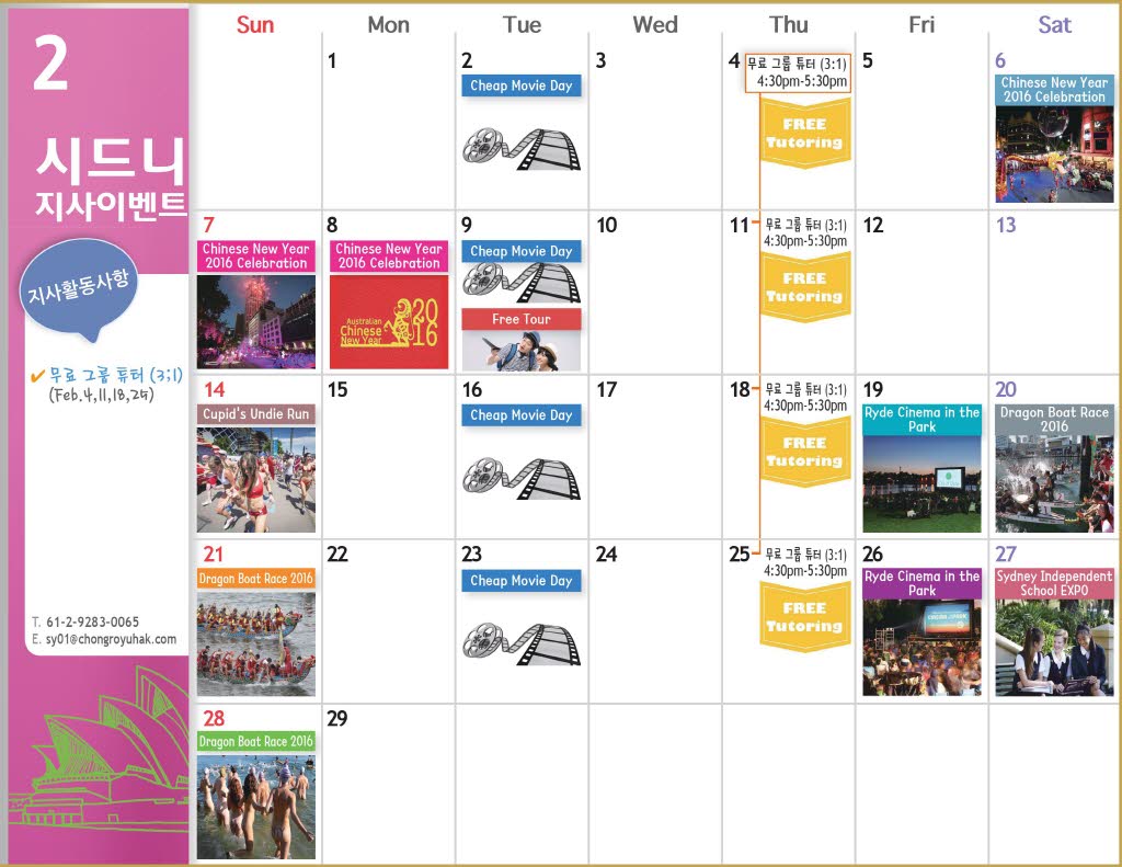 시드니 지사의 02월 이벤트를 아래와 같이 알려드립니다.