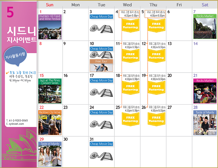 시드니 지사의 05월 이벤트를 아래와 같이 알려드립니다.
