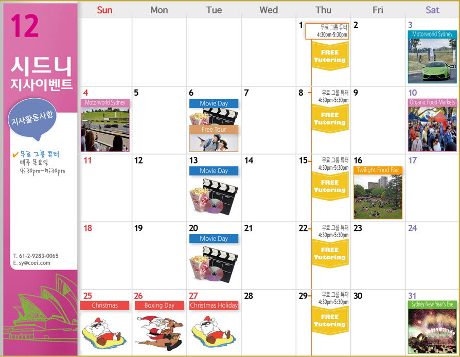 안녕하세요? 시드니지사 12월 Activity Calendar 알려드립니다.