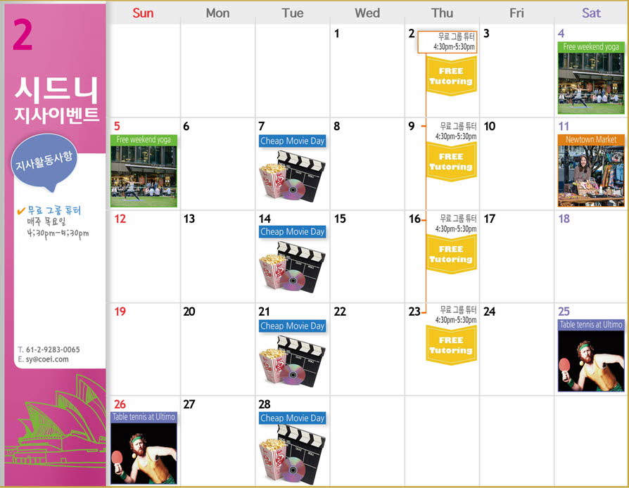 안녕하세요? 시드니지사 2월 Activity Calendar 알려드립니다.