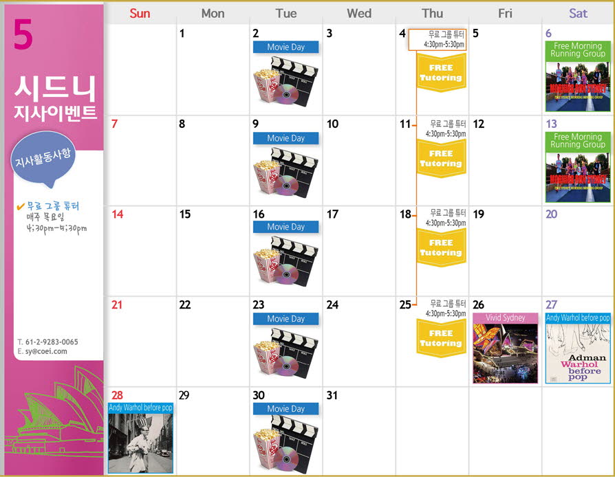 안녕하세요? 시드니지사 5월 Activity Calendar 알려드립니다.
